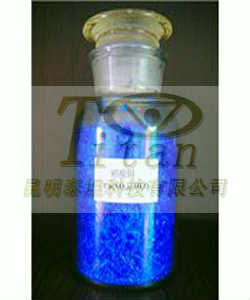 深藍色柱狀結晶,易溶于水和乙醇,其溶液呈酸性