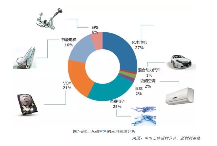 稀土永磁材料是將釤、釹混合稀土金屬與過(guò)渡金屬(如鈷、鐵等)組成的合金,永粉末冶金方法壓型燒結,經(jīng)磁場(chǎng)充磁后制得的一種磁性材料。伴隨技術(shù)進(jìn)步,產(chǎn)品性能提高,結構改善,磁性材料產(chǎn)品正逐步向高端市場(chǎng)擴張,在未來(lái)一段時(shí)間內我國磁性材料將會(huì )出現量?jì)r(jià)齊升的局面。目前,稀土永磁已廣泛應用到風(fēng)電、消費電子、VCH、節能電梯、EPS等領(lǐng)域。