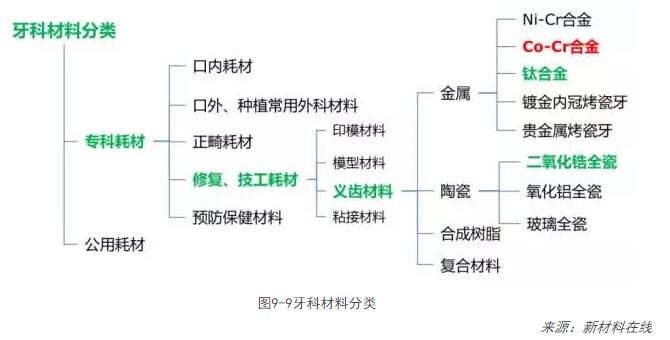 表9-2牙科所涉及的材料